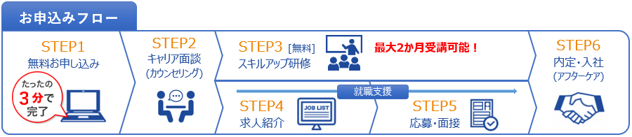就職前のお悩みから、就職支援・スキルアップ・アフターケアまでしっかりサポート!